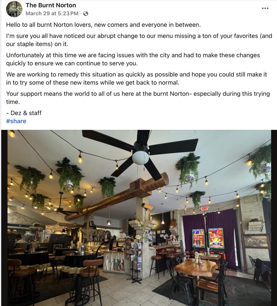 In theory, there’s a clean argument here: the city is enforcing code, and the restaurant isn’t compliant.